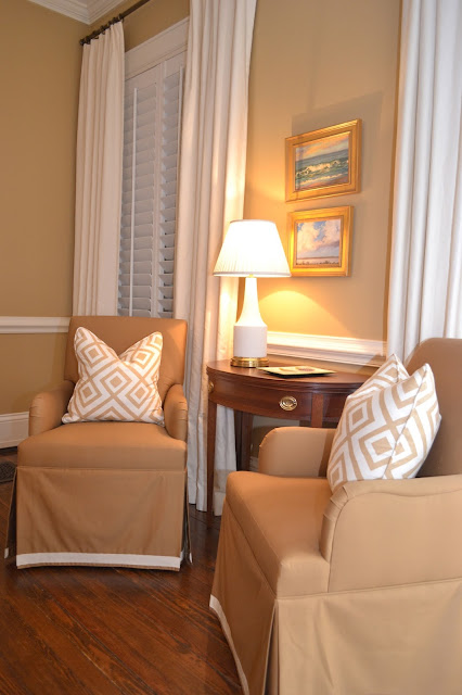 THIS HOMEOWNER WAS SICK OF THE PEACH WALLS AND WANTED TO ADD SOME PANELED DRAPERY...........